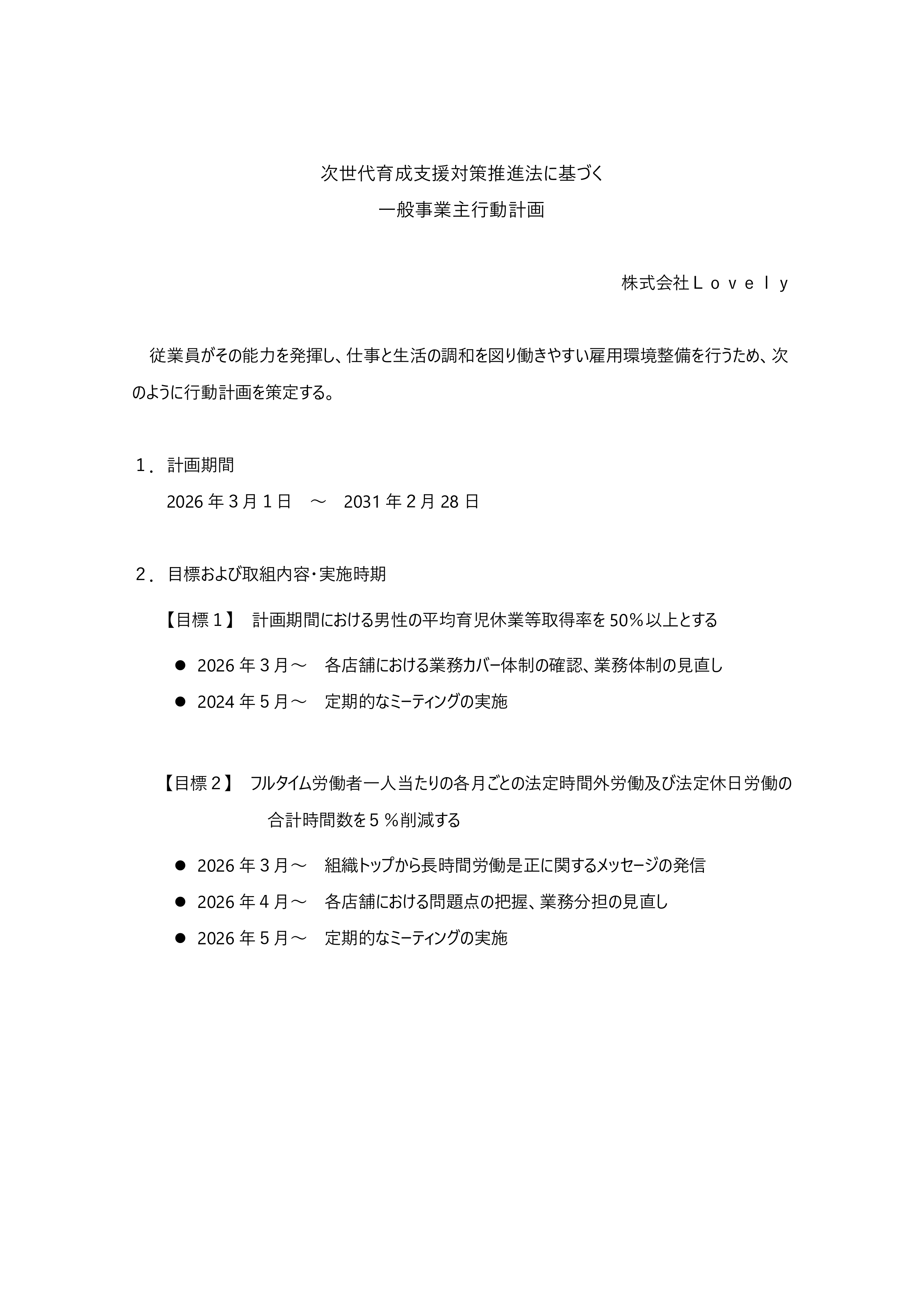 「次世代育成支援対策推進法」および「女性活躍推進法」に基づき、一般事業主行動計画を策定いたしましたので公表いたします。